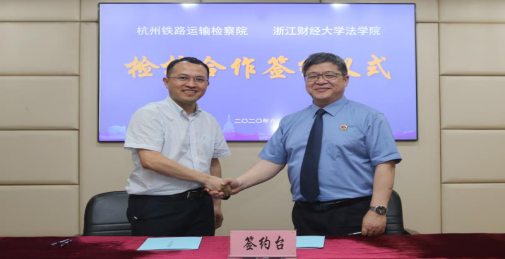院长童志锋、党委书记朱丹、副院长李海龙等与杭州铁路运输检察院党组书记、检察长贾海平、副检察长刘建荣、政治部主任杜杨、检委会专职委员曾涌共同出席签约仪式。