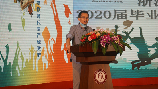 教师代表严城老师娓娓道来,并希望未来能看到财大法学学子在社会每一个平凡的岗位上,为国家、为社会作出贡献。