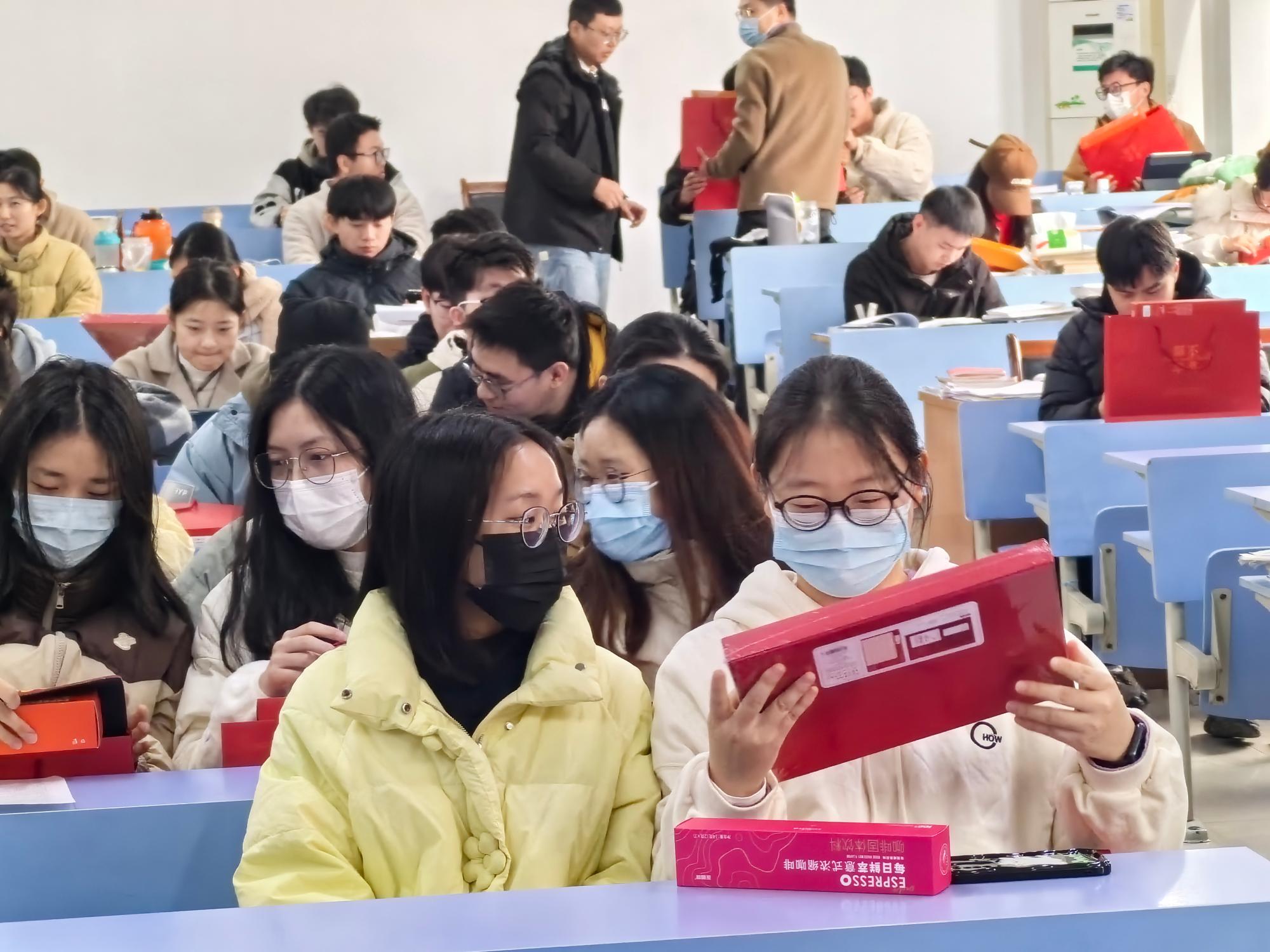 随后,领导老师们一一为同学们分发考研加油礼包,同学们纷纷表示暖心和感动,表达了坚持奋斗、考出好成绩的决心。