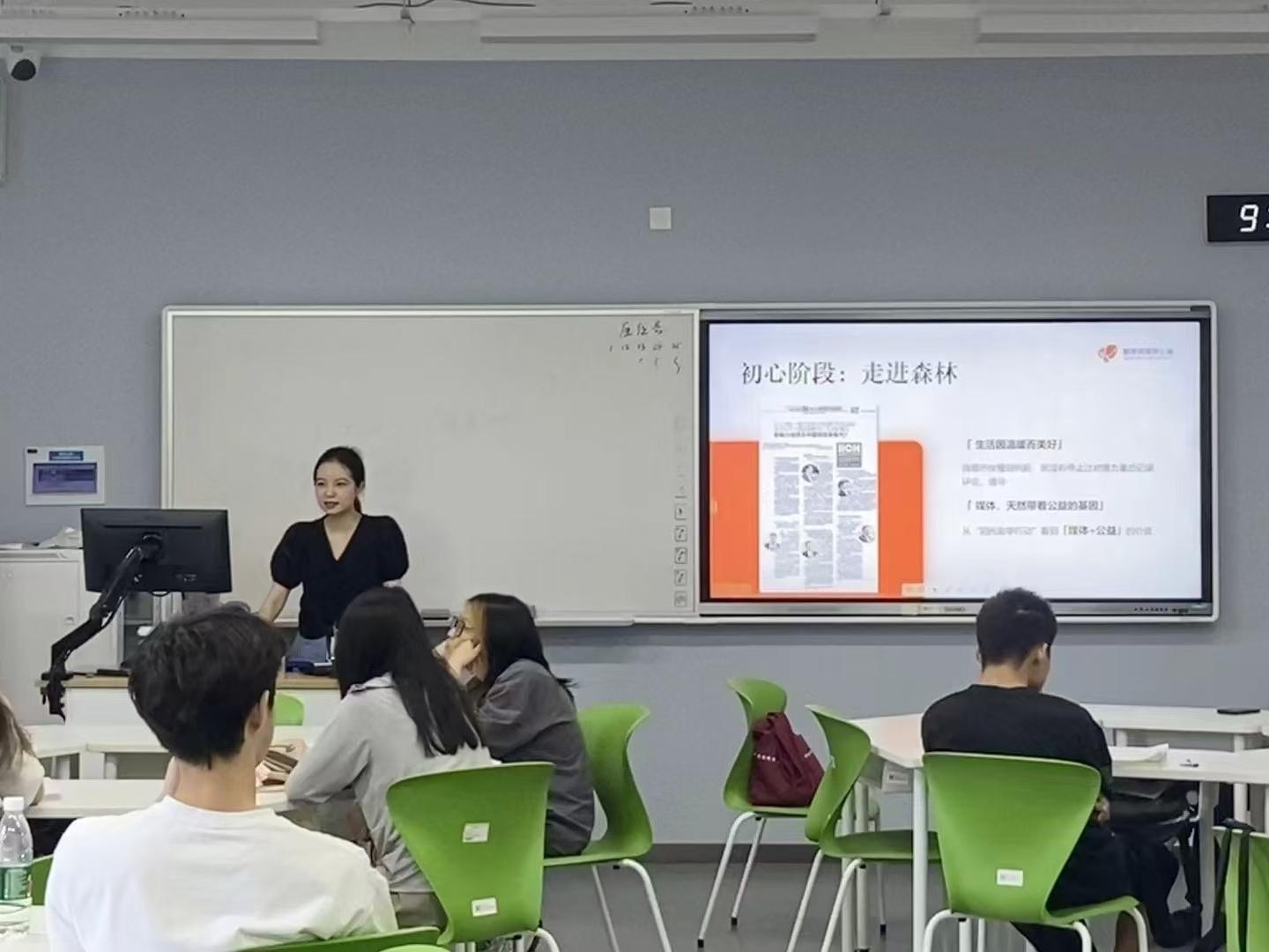 客座教授吴伟、都市快报公益部主任李烨池和九阳公益基金会副秘书长黄晖。三位课程成员均为黄漫