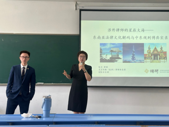 学生带来了一场题为“涉外律师的星辰大海:东南亚法律文化解码与中东规则博弈实录”的职业分享。“职业人生分享会”是23级非诉实验班班主任张晓晨老师策划组织的系列活动,旨在邀请各行各业的精英人士分享他们的人生经验、执业经历,为同学们指路,现已举办到第八期。