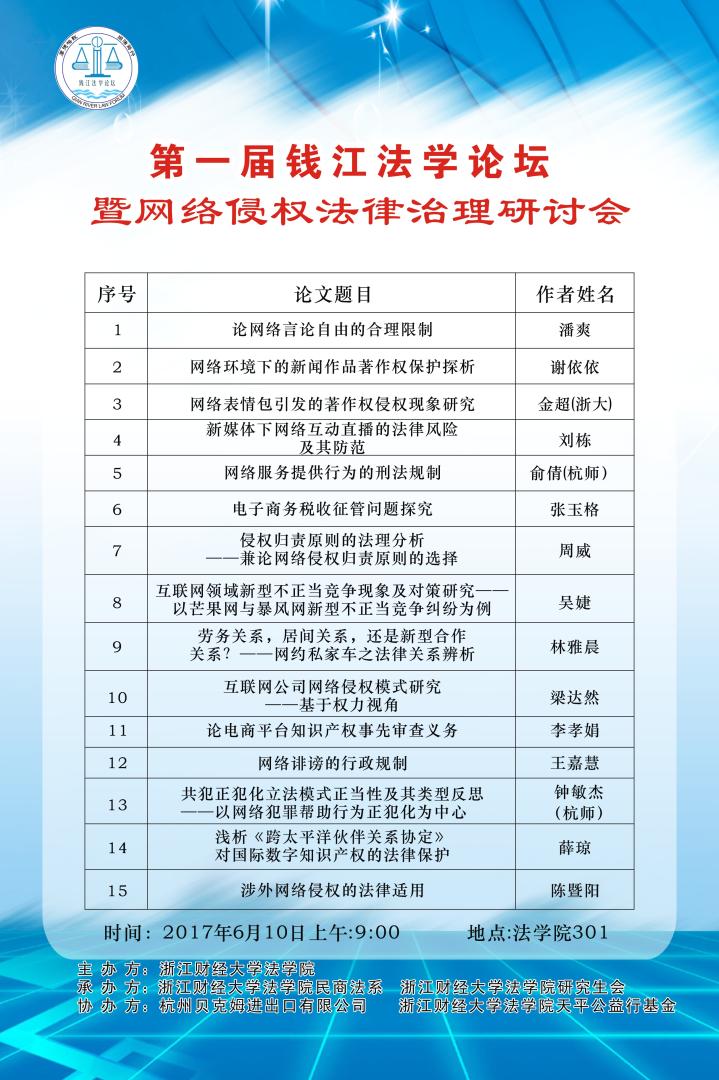 第一届钱江法学论坛暨网络侵权法律治理研讨会