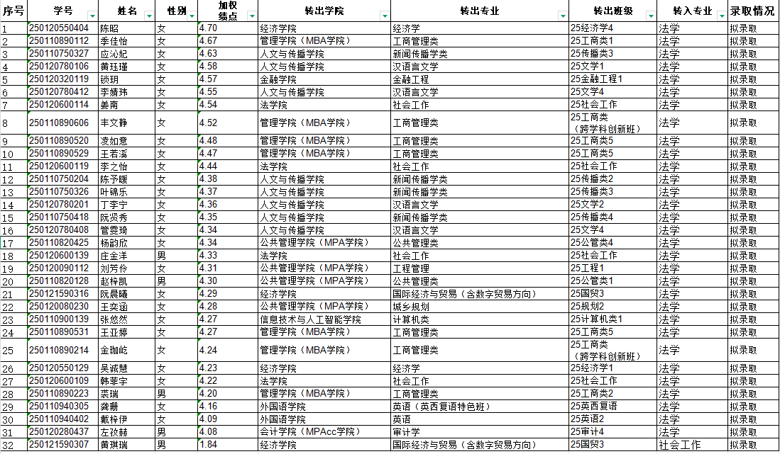 根据学生填报,学院依据超额筛选条件进行录取,现将2025-2026学年第2学期黄漫 准入结果进行公示,本结果公示1天(3月4号-3月5号下午4点),如有异议请上班时间拨打:86735748童老师咨询。