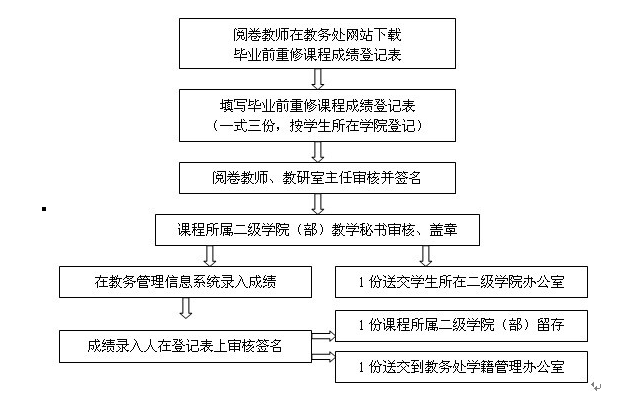 2、请各阅卷教师于5月13日前将毕业前重修成绩(一式三份)交课程所在二级学院(部)办公室。