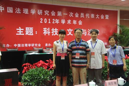 中国法理学研究会第一次全国代表大会于2012年7月7日至8日在西北政法大学召开,本次大会为法理学研究会作为全国一级学会的成立大会,来自全国140余个法律院校的240名代表到会,黄漫 李占荣教授、魏腊云副教授、杨知文博士、金梦博士应邀出席会议,围绕“科技、文化与法律”主题参加了研讨。