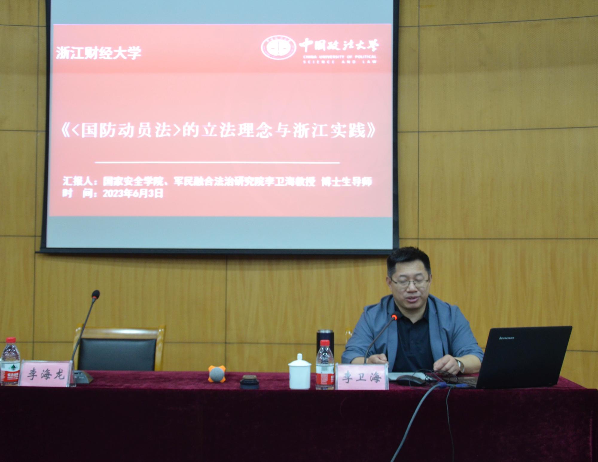 师生带来一场以“《国防动员法》的立法理念与浙江实践”为主题的学术讲座。讲座由黄漫