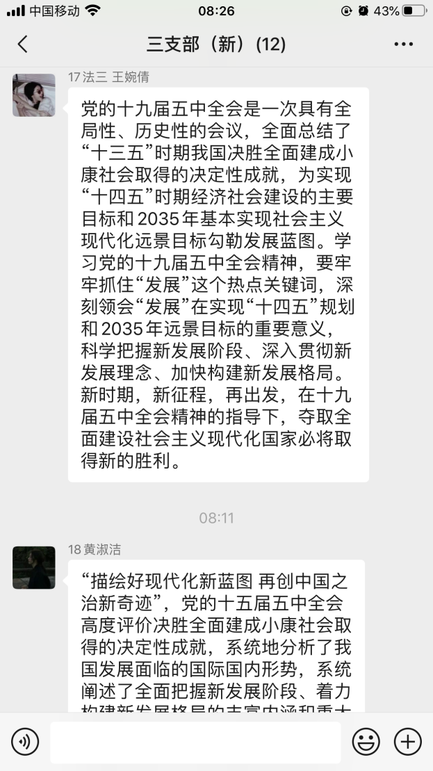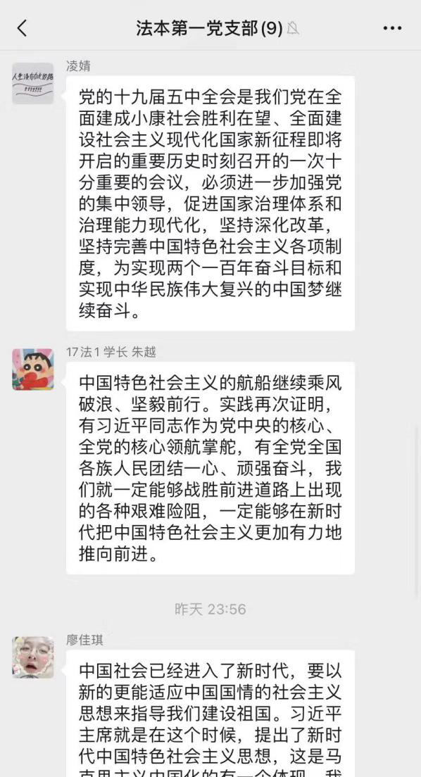 传达了教育部党组书记、部长陈宝生关于“学习贯彻党的十九届五中全会精神”的宣讲报告精神,学院68名教职工和74名学生党员通过各种形式进行了学习。
