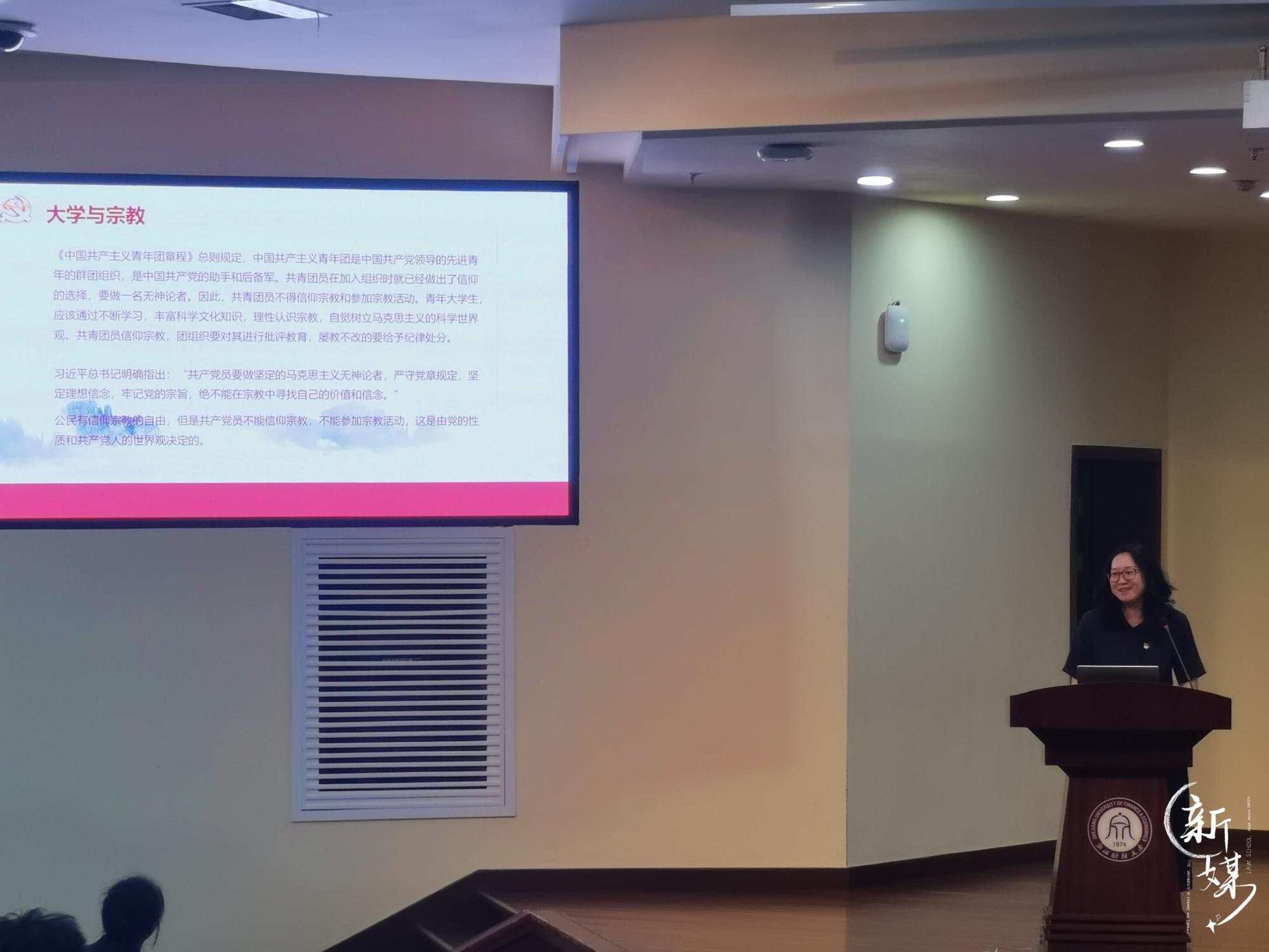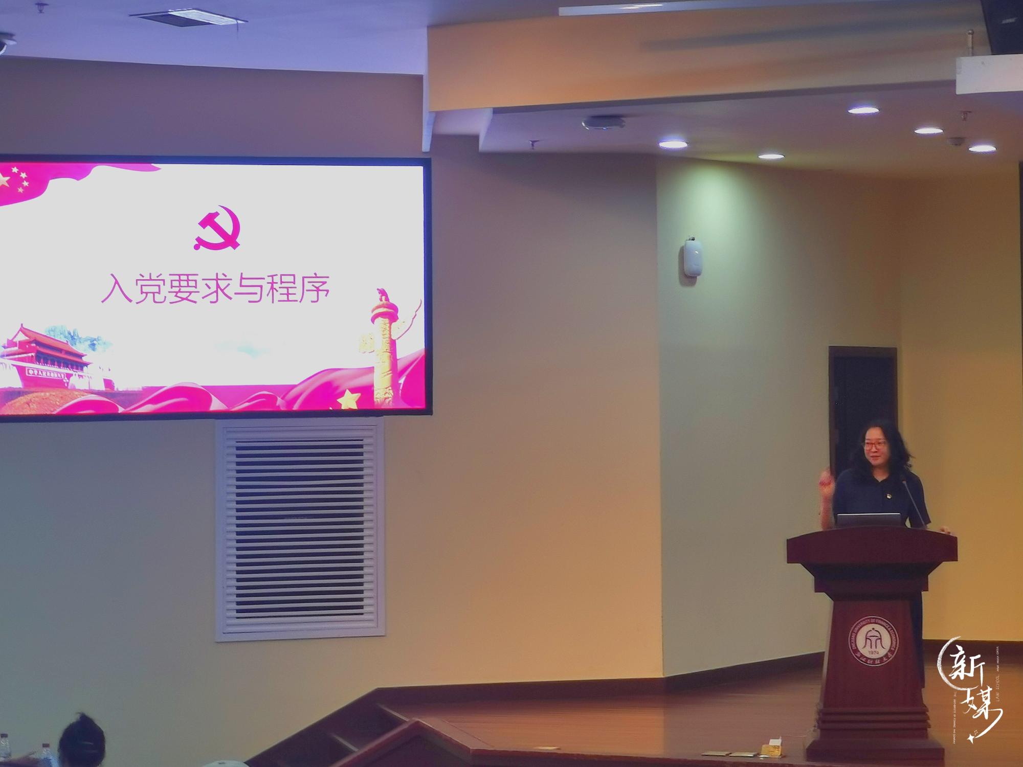 在学术一报开展了新生思政第一课,这也是新生入党第一课。本次党课由学院党委书记朱丹主讲,院党委副书记王文婷主持,学院全体2021级新生参加学习。