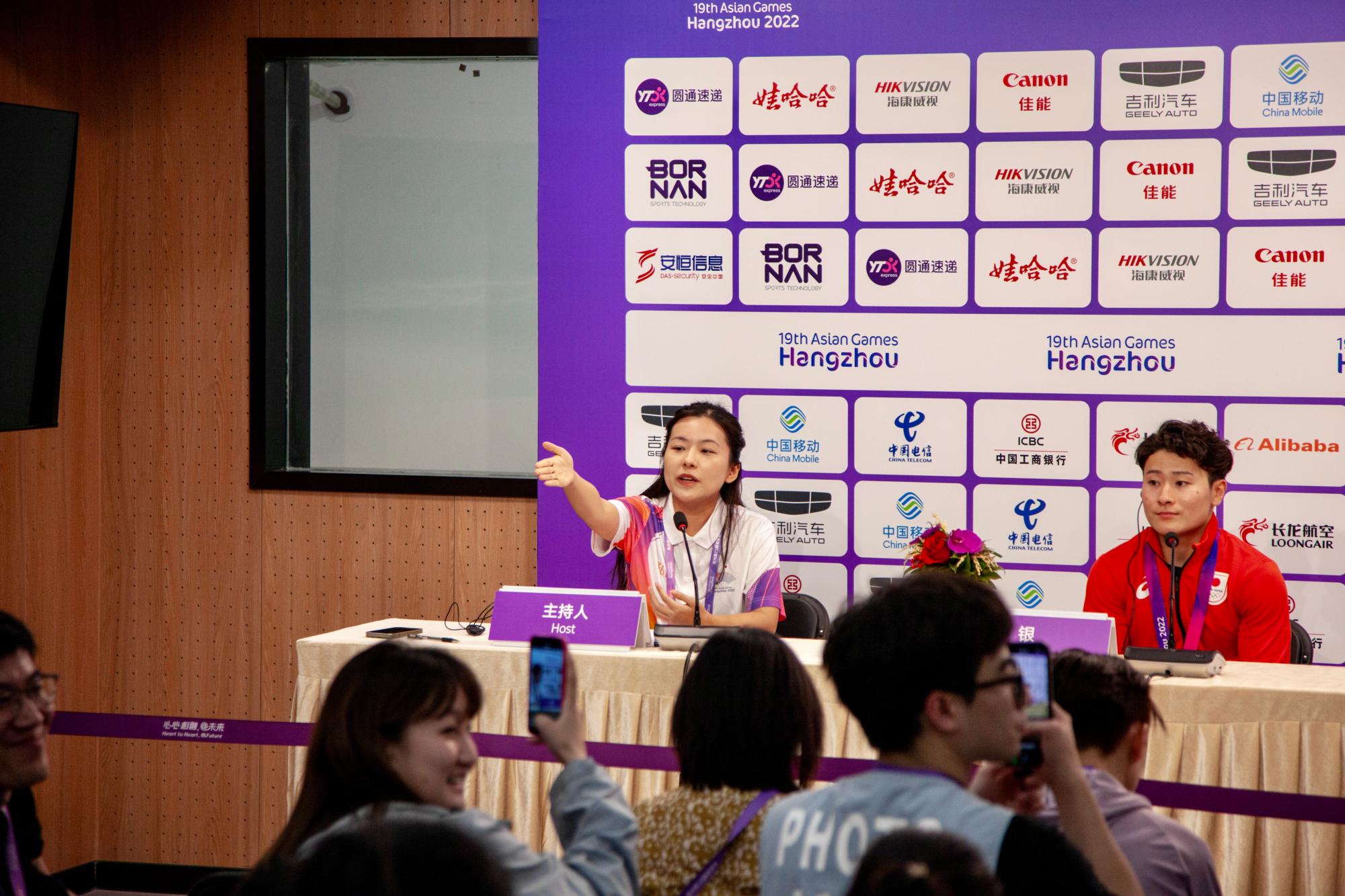 郭静忆主持竞技体操男子个人全能决赛赛后新闻发布会