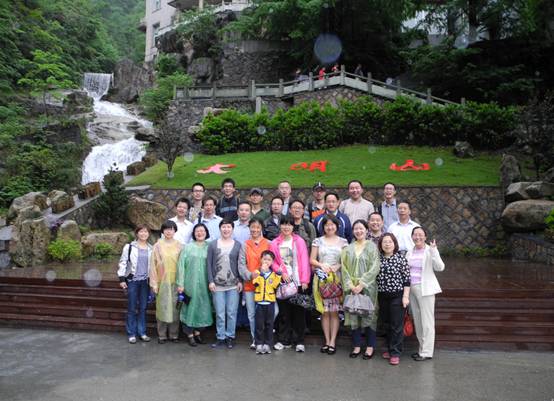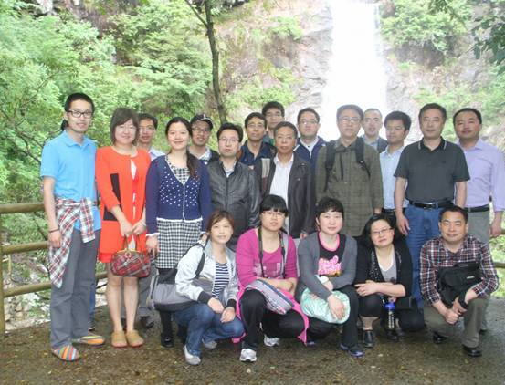 (全体教师在十门峡瀑布前合影留念)