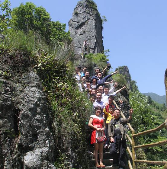 (全体教师在剑门山顶合影留念)