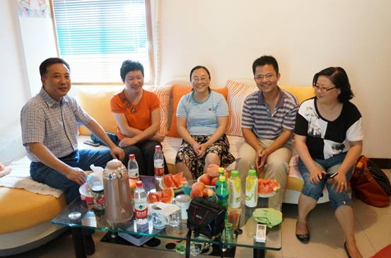温暖的家访制在暑期继续传递着关爱和温情。学院党总支书记蔡国金、党总支副书记罗金艳、副院长李政辉、分工会主席康莉莹、行政办公室主任章琳一行,走访看望了赵琼研究员家和俞晓老师家。学院领导深入了解各位教师的生活、工作状况,送去了学院的关怀和问候。