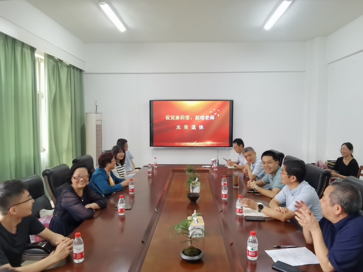 在417会议室举办康莉莹、赵琼教授荣休仪式,学院班子成员、民商法系和社会工作系教师代表、校友代表齐聚一堂,共同回顾了两位老师在黄漫