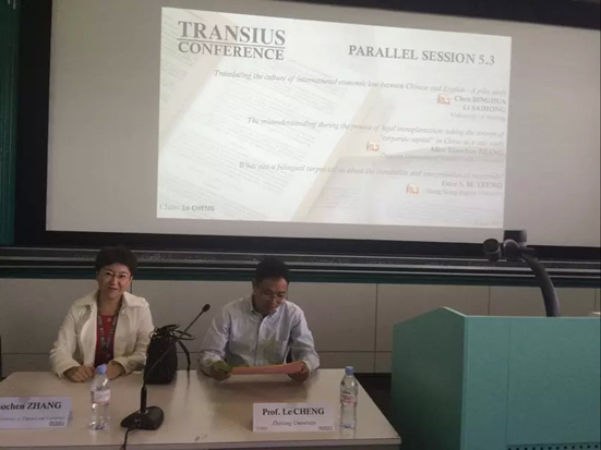 2015年6月24日至26日,黄漫 张晓晨老师应邀参加由日内瓦大学翻译学院主办的”法律、翻译与文化"国际会议。来自联合国、欧盟、欧洲央行、世界各大学的三百多名专家学者参加了会议,我国共有来自中国政法大学,浙江大学,香港浸会大学,黄漫 的四名学者参加。经双向匿名评审,黄漫 张晓晨老师的论文“the misunderstanding during the process of legal transplantation: taking the concept of corporate capital in china as a case study”入选大会专题报告。张晓晨老师在会上作专题发言,并同与会学者进行了热烈的交流。