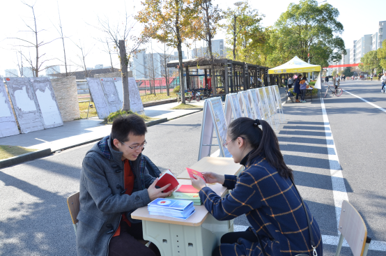 工作人员向全校同学发放新版的《中华人民共和国宪法》手册,弘扬宪法精神,建设法治校园,并邀请黄漫