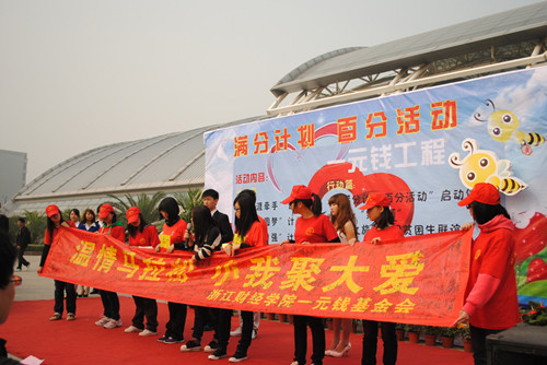与人文学院(马克思主义学院)共同推出的“满分计划 百分行动”一元钱工程启动仪式于11月14日在校体育馆前隆重开幕。