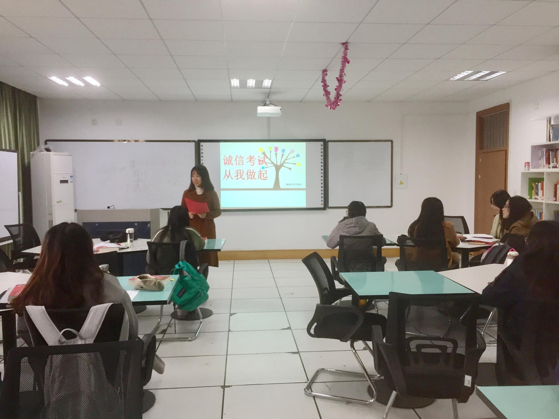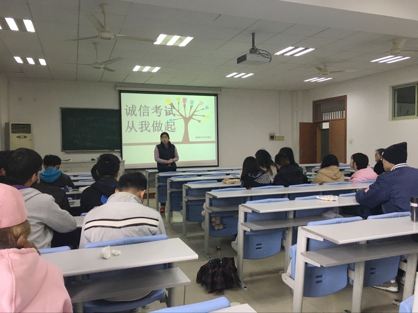 结合校学风建设主题月活动精神,进支部、进年级、进班级开展“诚信考试,从我做起”主题宣传教育活动。