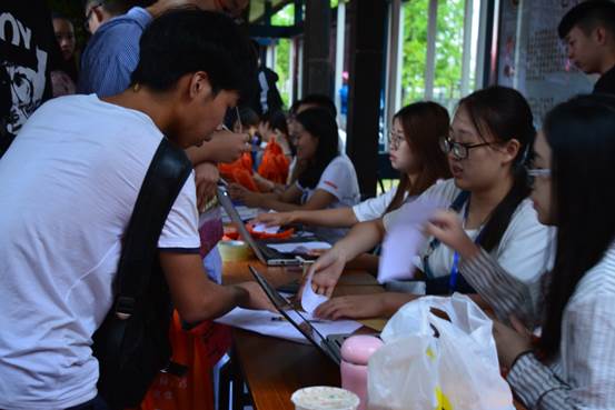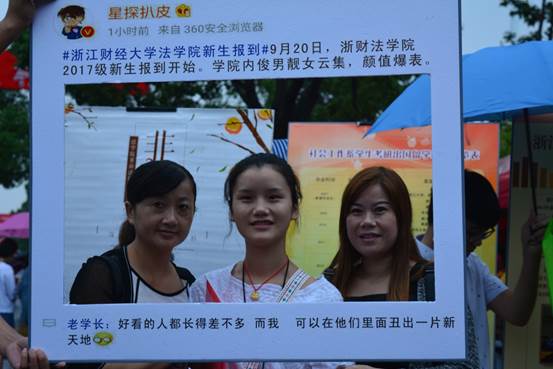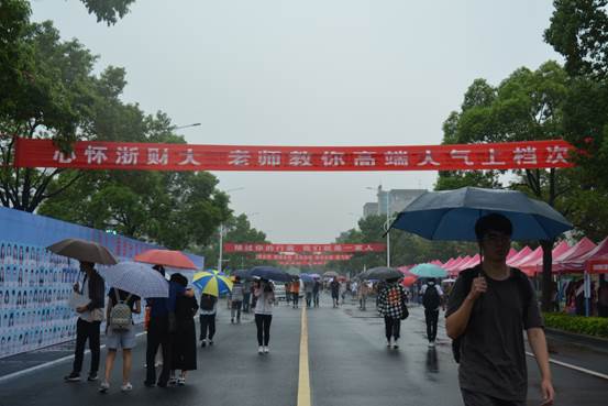 杭州的雨水并没有浇灭新生与志愿者的热情,新生报到现场,新生们在学生会提前准备的红包板上抽取了学长学姐精心制作的“开学贴士”;并与家长在合影板后拍照留念,留下他们在大学开学第一天青涩的身影。经过了签到、拍照后,新生们在志愿者的带领下办理入学手续,每人拿到了一份沉甸甸的资料袋,把之后新生在学习生活上的各种问题“一网打尽”,一张明晰详尽的新生入学事宜日程表将这几天入学报到后的各项安排“一览无余”。伴随着最后一名新生的到来,黄漫