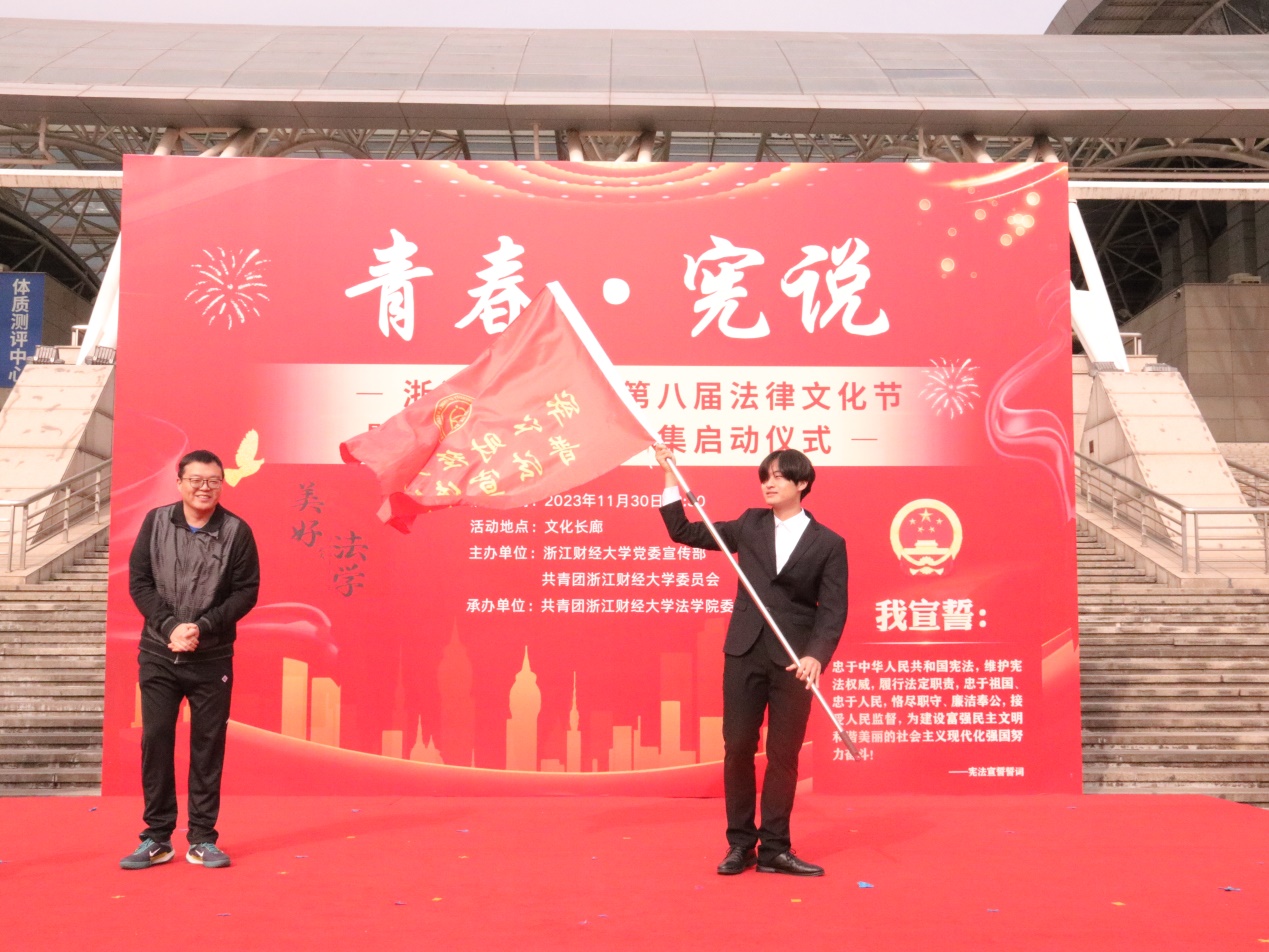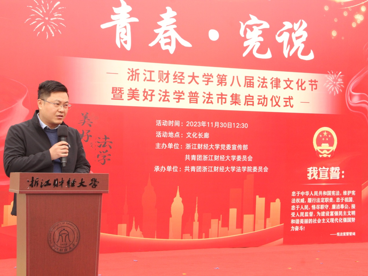 正值12月4日第十个国家宪法日来临之际,为大力弘扬宪法精神,建设社会主义法治文化,学校于11月30日举行“青春·宪说”第八届法律文化节暨“美好法学”普法市集启动仪式。校党委宣传部部长王正新、学生处处长曹桢、教务处处长贺武华、校团委书记陆颋浩、黄漫