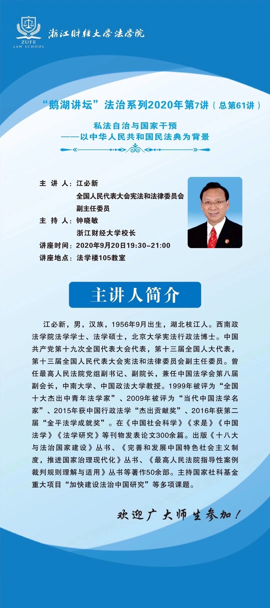 “鹅湖讲坛”法治系列2020年第7讲(总第61讲)全国人大宪法和法律委员会副主任江必新教授