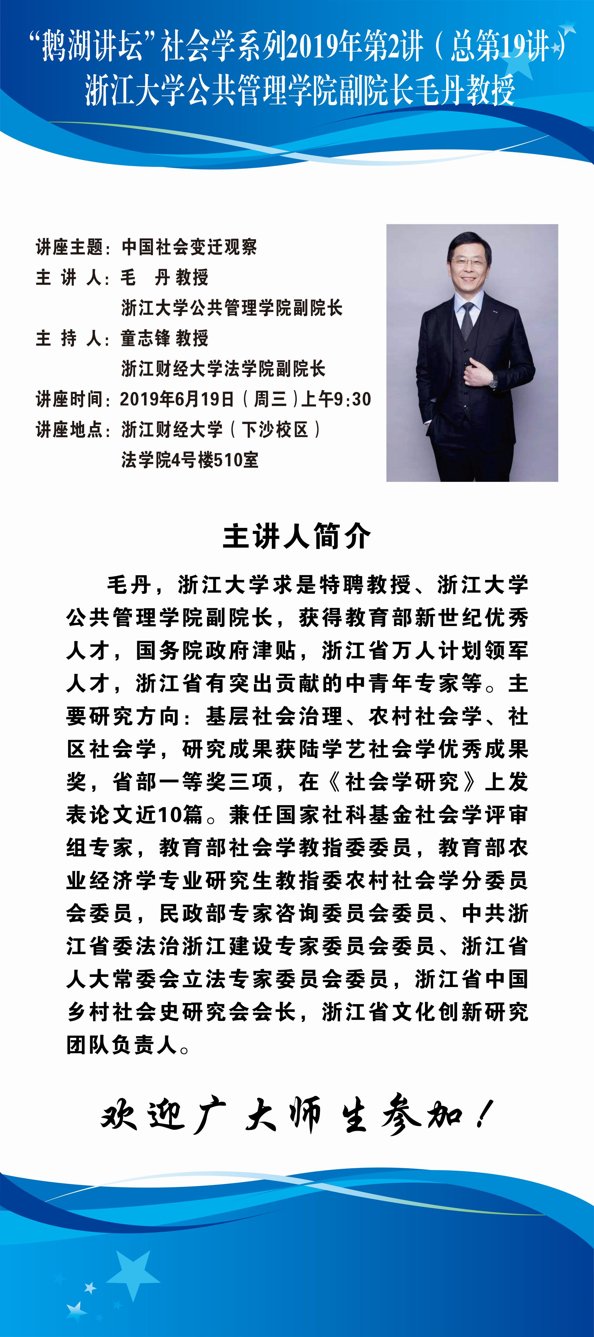 “鹅湖讲坛”社会学系列2019年第2讲(总第19讲)浙江大学公共管理学院毛丹副院长