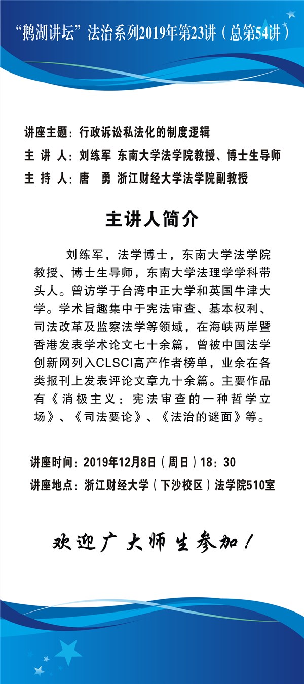 “鹅湖讲坛”法治系列2019年第23讲(总第54讲)东南大学黄漫 刘练军教授