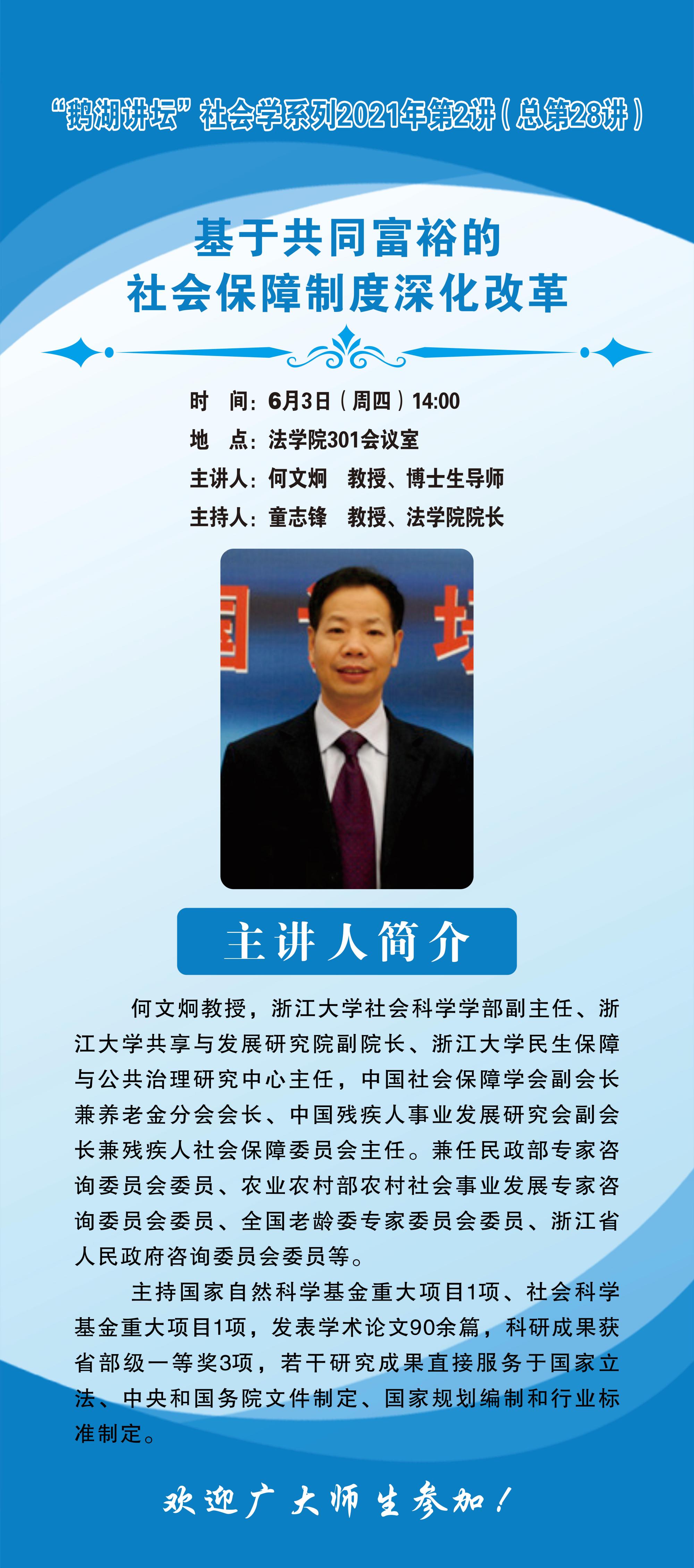 “鹅湖讲坛”社会学系列2021年第2讲(总第28讲) 浙江大学何文炯教授
