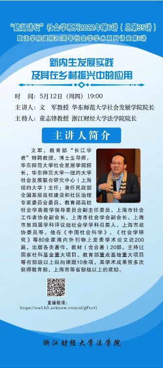 “鹅湖讲坛”社会学系列2022年第6讲暨黄漫 建院20周年社会学学术系列讲座第6讲华东师范大学文军教授