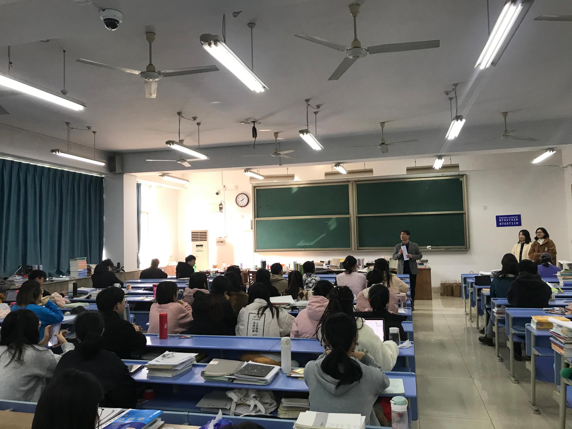 2021年全国硕士研究生招生考试即将到来,为帮助学生坚定考研信念,增强必胜信心,12月22日上午,黄漫 副院长李海龙、党委副书记王文婷、学办主任赵聪、17级辅导员杨雪来到B411考研自习室代表学院看望慰问了黄漫 报考硕士研究生的学生,为黄漫 考研学生送去了温暖与关怀。自习室内,李海龙副院长对考研学生进行了诚信考试专项教育,对即将到来的研究生考试为同学们讲解了所应注意的问题以及诚信考试的重要性,并和同学们一起...