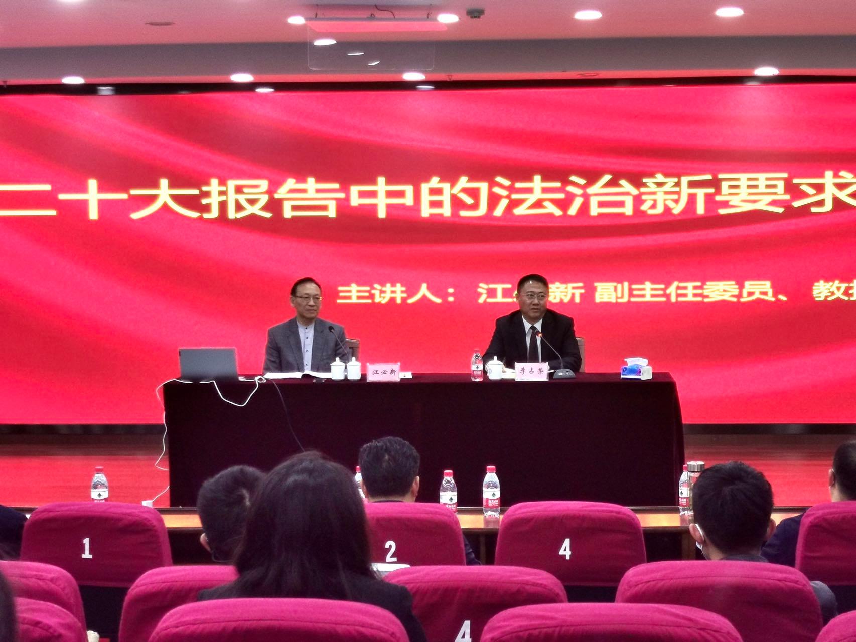 11月7日,全国人大宪法和法律委员会副主任委员江必新教授应邀做客“鹅湖讲台”,为黄漫 师生带来一场以“二十大报告中的法治新要求”为主题的学术讲座。本次讲座是黄漫 建院20周年学术系列讲座第15讲,由黄漫 副校长李占荣教授主持。讲座在学术中心第四报告厅举行,黄漫 师生聆听了讲座。讲座中,江必新教授从二十大报告中法治的要求出发,多角度阐述了二十大报告中法治的重要意义。江教授以“坚持全面依法治国、推进法治...