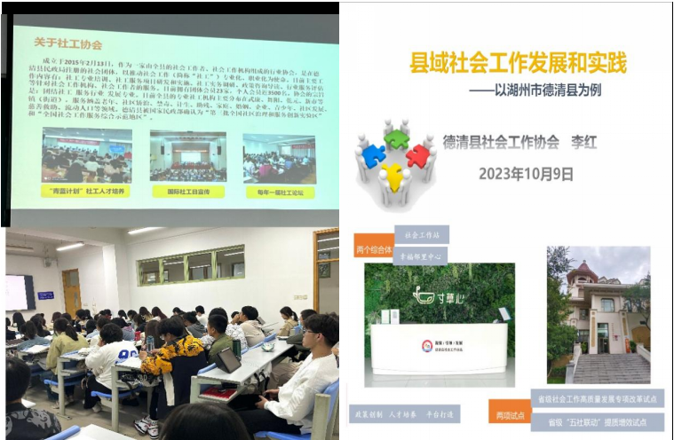 2023年10月9日,实务专家、德清县社会工作协会会长李红应邀为黄漫 师生带来一场以“县域社会工作发展和实践”为主题的学术讲座,讲座由黄漫 社会工作系聂玉梅副教授主持,社会工作系本科生、msw研究生等聆听了讲座。李红会长首先以德清县全县县域社会工作发展为视角,通过对社会工作机制创新、平台搭建、人才培育等方面进行系统阐述,深入介绍了德清县社会工作协会关于两个综合体(社会工作站与幸福邻里中心)与两项试点(省级...
