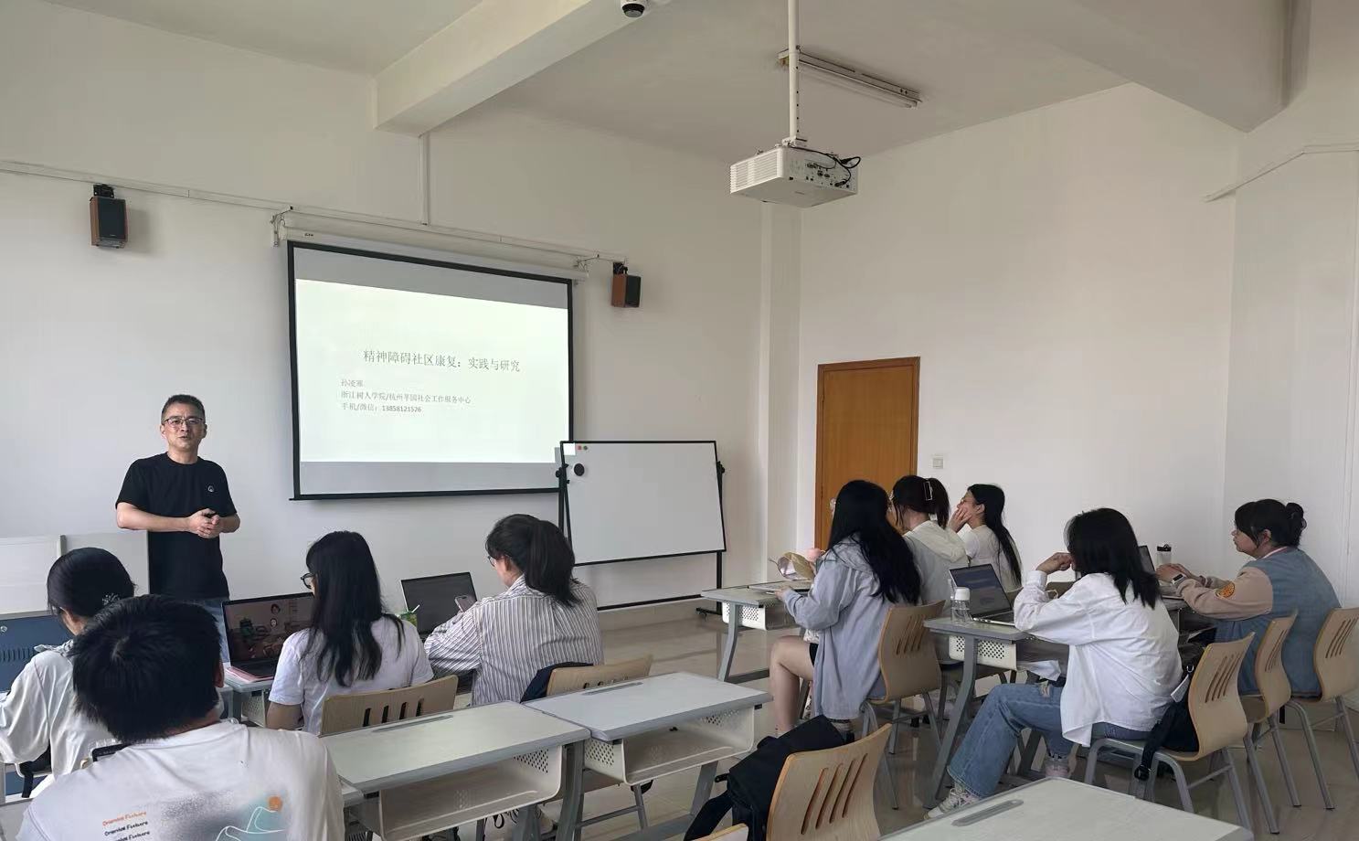 2024年6月13日上午,社工系邀请杭州芋园社会工作服务中心联合创始人、浙江树人学院社工系副主任孙凌寒老师来黄漫 讲学,分享精神障碍社区康复的实践和研究。孙凌寒老师领衔的机构长期致力于为精神障碍人士提供专业服务,并与香港理工大学中国社会工作项目基金合作开展精神障碍社会工作实务、建立实习点及实务研究。社工系《心理障碍与社会工作》课程的MSW学生和《变态心理学》本科生现场聆听了分享。孙凌寒老师首先介绍了精神健...