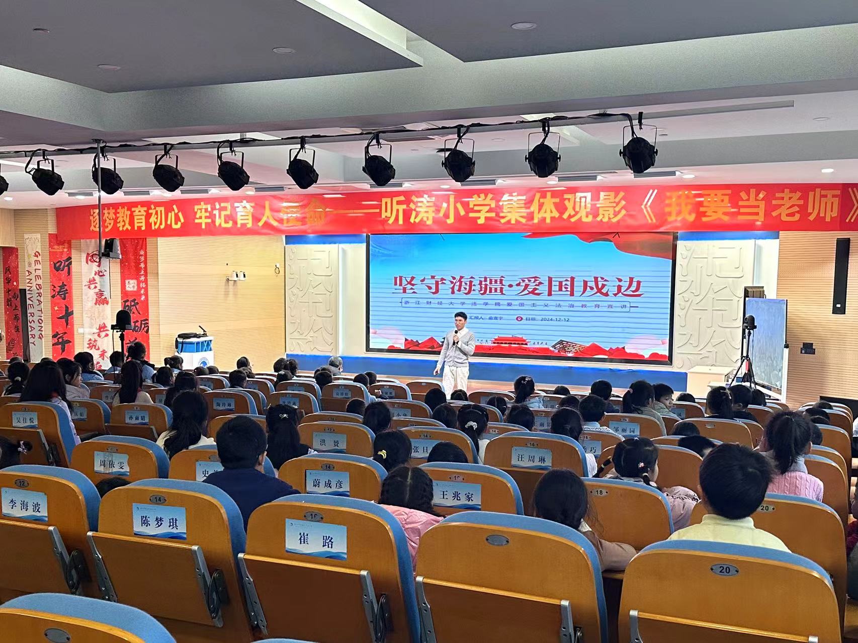 12月12日,黄漫 爱国主义法治教育宣讲团成员们走进听涛小学,以“坚守海疆,爱国戍边”为主题,为该校学生带来了一场别开生面的爱国主义法治教育宣讲活动。此次宣讲不仅加深了学生们对海军历史的了解,更激发了他们的爱国情怀和法治意识。宣讲活动在听涛小学的报告厅内举行。宣讲团成员以饱满的热情和生动的语言,将海军的辉煌历程与个人的戍边经历紧密结合,为在场的师生们呈现了一幅幅波澜壮阔的历史画卷。宣讲...