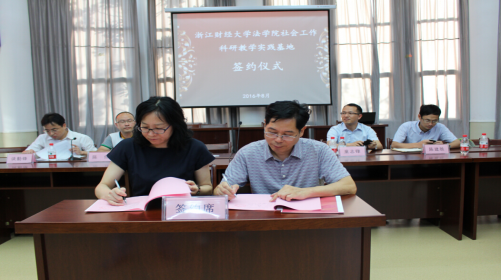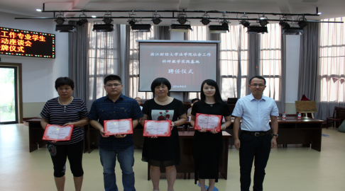 社会工作科研教学实践基地进行签约和揭牌仪式,并进行兼职教授和实践导师的聘任仪式。刘纪清局长向实践学生介绍了海宁社会工作发展的良好环境和优势资源,希望实践学生在实践结束后能够继续关注海宁社会工作发展,海宁急需优秀专业人才做支撑,并对社工机构提出要求,希望机构能够做大、做强、做优。朱丹书记作重要讲话,对本次暑期实践活动表示感谢,本次实践活动体现了三个专业化。一是专业化的实践,二是专业化指导,三是专业化服务。她指出,浙财大黄漫