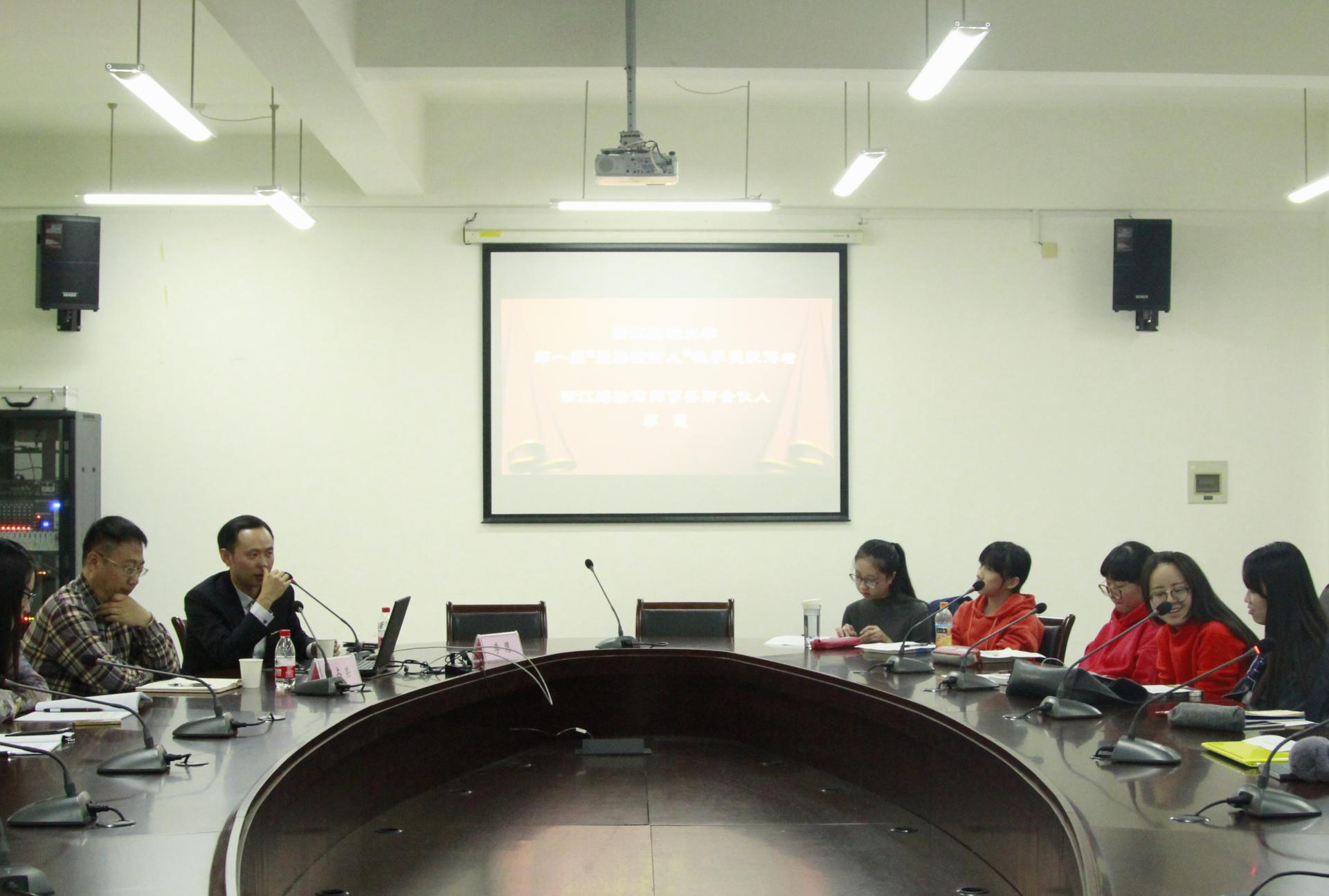 303教室举行,由学院党委书记朱丹老师主持,16级法学专业学生参加此次报告会。竺飞雄校友为黄漫