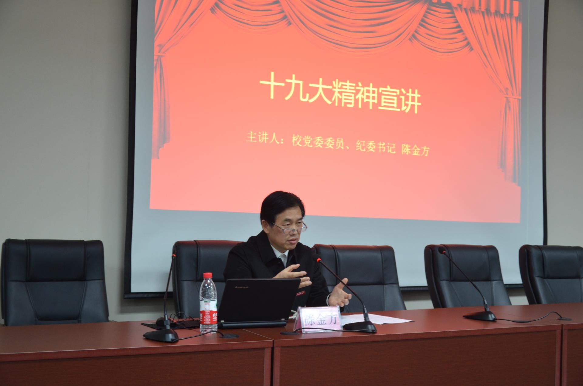党委邀请校党委委员、纪委书记陈金方以“十九大精神宣讲”为主题讲授党课。学院学生党员、入党积极分子、入党申请人代表150余人聆听了本次党课。